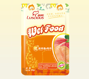 产品名称:金枪鱼+鸡肉 规格型号:85g 每箱数量:120袋 公司网址:www.luspet.com